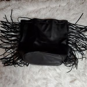 VICTORIA'S SECRET BLACK FRINGE BACKPACK STYLE BAG!