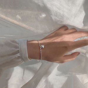 925 Sterling Silver Dainty Beaded Heart Bracelet