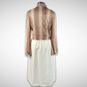 Style- Vintage 70s 80s Striped Secretary Tie Neck Sheath Dress Pussy Bow Multicolor