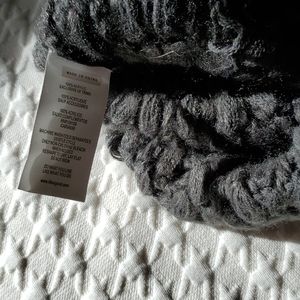 Warm tobaggan with neck ties for those blistery days. Lovely color. gray/green/blue weave