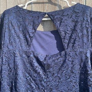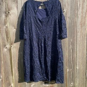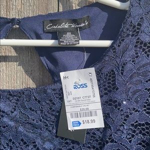 New with tags - Formal Navy blue dress size 2x with 3/4 sleeve. This dress has two layers, top layer is lace overlay with glitter. The dress has plenty of stretch. Smoke free home, fast shipper! Lay flat measurements: