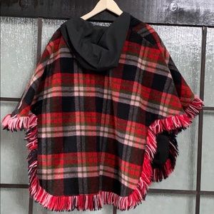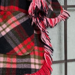 Vintage flannel cape jacket. No tags but could fit really anyone. I would say it’s a large but super cute on all frames. Pink, red, black and green colors. In excellent condition! Reversible to all black with pockets.
