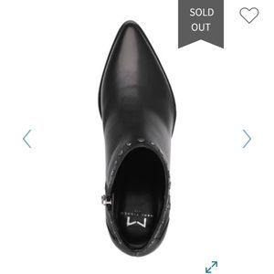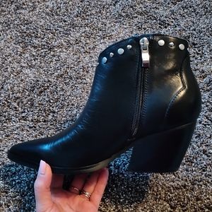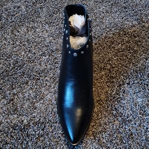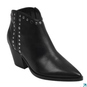 A sharp, pointed toe and silver-tone studs complete the look on these leather ankle booties. Available in sizes 6.5 and 7.5. Also available in my closet in a tan color suede!