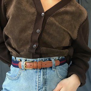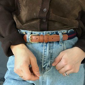 Vintage coach linen leather belt blue Medium large