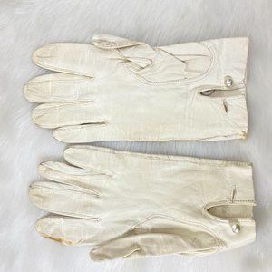 Vintage White Leather Wrist Length Gloves Size 6.5