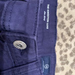 AG kids navy sateen jean style pants. They are a skinny Jean style fit in boys size 14. My son loved these because they are so soft and comfy but are dressy enough for church, dinner etc. Only worn a handful of times in like new condition