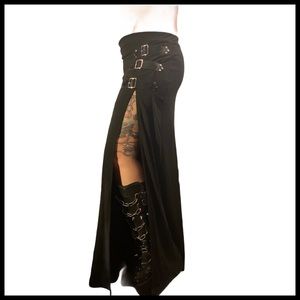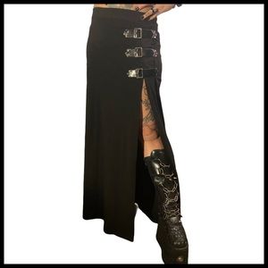 Brand new! Size S..Beautiful Black sexy gothic long skirt with 3 buckle decorations on the left. Split open on the left leg. Black Zipper on the side. Size: (Waist 13 inches / Hip 18 inches / Length 41.5 inches) New tag. Halloween / cosplay / custom / dark Angel / gothic / mermaid / vampire / sexy / alternative / elegant / pinup / rocker / Morticia / glam rock / femme fatale / rockabilly / Rockchic / cyber / goth / rockstar / witch/ Moon/ cross/ tube/ pencil / buckle / Goth/ Fantasy/ side open