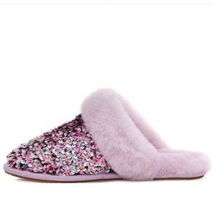 If you like all things sparkly, glittering, and bling these are for you! Newly finished with a festive sequin upper, lined with UGG's world-renowned sheepskin. Cozy style features a molded rubber sole for easy indoor-outdoor wear.Slip-on features a round-tow silhouette with a complementary sheepskin collar and 17mm sheepskin lining and insole LIMITED AMOUNT Brand New In Box