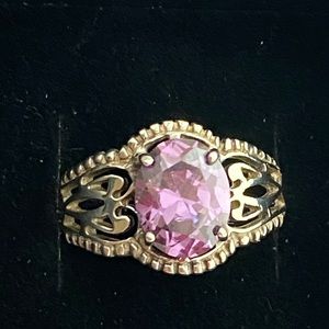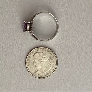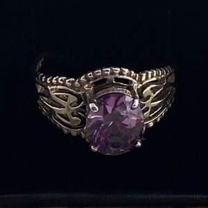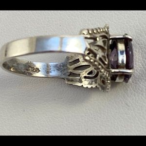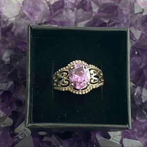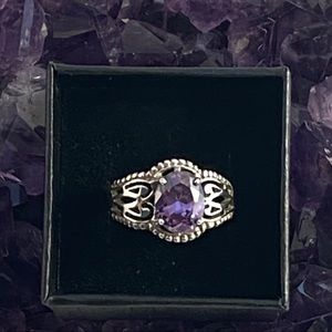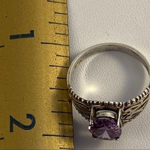 Chateau D’Argent Stamped 925 Sterling Silver Ring with Beautiful purple/ pink stone.Beautiful filigree, scroll work on a faceted oval prong set.