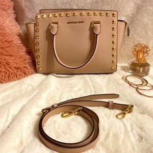 Light pink crossbody purse, comes with removable strap! Very spacious purse comes with two inside pockets. Purse is in very good condition, only worn 3x.