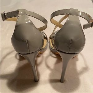 Women’s Size 9M grey stilettos, 4-4.5” tall. Worn twice, a graduation and a wedding. No scuffs or marks on surface of shoe or heel (only underside that is shown in pictures).