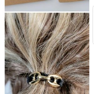 Trendy Gold Links with Black Stretch elastic can wear as Hair Ties or Bracelets. 5 Pcs set