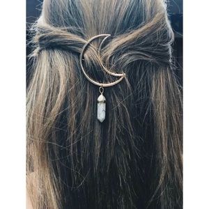 New without tags cute crescent boho moon hair clip with marble crystal shaped charm
