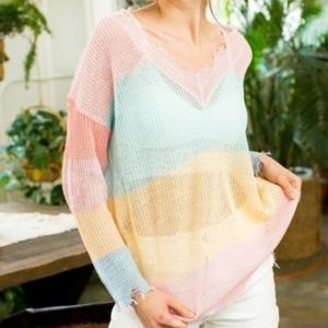 Kate Distressed Color Block V Neck Sweater