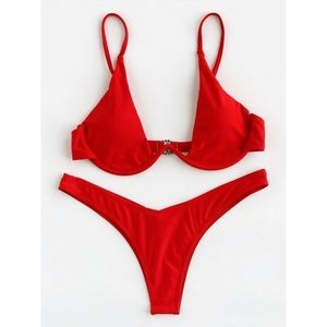 Thong underwire bikini red swimsuit sexy