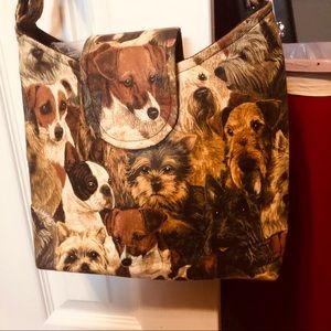 CUTE Handmade Canvas”Doggy” Purse! All kinds of cute doggies on this canvas bag! Velcro closure and very roomy. Only used once. See pics for measurements. If you are a dog lover, this bag will be a fun one for you!