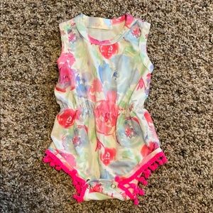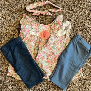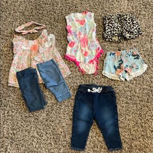 This is a lot of infant girl clothes sized 3-6 months. All items are in excellent used condition! The leopard shorts are sized 0-3 months but fit large. Includes a summer dress with tights (x2) and matching bow, boutique-style shorts (x2), romper, and fashionable jeans.