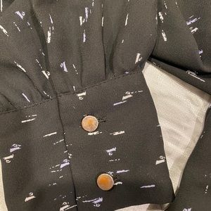 Apt. 9 Black long sleeve blouse with button at bottom of sleeve. some pale color splatter on top of black