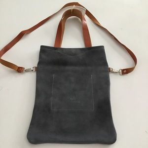 Beautifully crafted, made in Africa per info available. Dove gray with removable shoulder strap. Snap closure and inside pocket. Size is 11”x15”. Hand straps 8” drop. Cross body strap 19” drop at longest length. One very small spot shown in last pic, hardly noticeable.