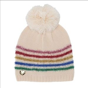 Betsey Johnson| Cream and Rainbow Pom Pom Beanie