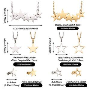 Choose between gold set or silver set - each set includes open star earrings and necklace set, Solid star necklace and earring set and Multistar bar Necklace.