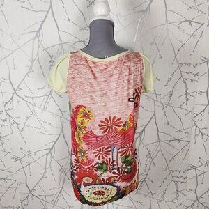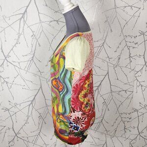 5th & Custo Artsy Colorful Print V-Neck Y2K Top