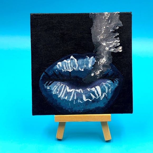 5”x5” Original Hand Painted Stretched Canvas Board w/Smoking Lips. Acryl…