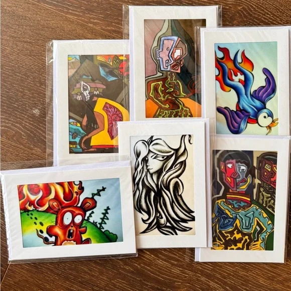 (6) Abstract Art - photo prints Omid Bossi's art - 5x7 blank cards & envelope