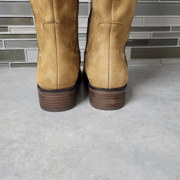 6 Aldo Mihaela Tan Leather Nubuck Knee Boots with Gold Zipper Detail
