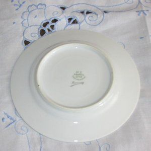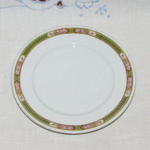 Set of six bread or side plates. White with band on rim, pink roses and leaves.