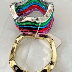 6 BRACELETS, SHINY CIRCLES IN WAVE PATTERN, MULTICOLOUR GLOSSY, TAG ON