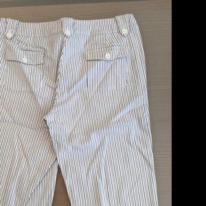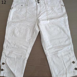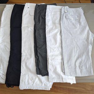 - Différents pantalons 3/4 pour femme. Couleur : blanc, noir, taupe, blanc avec rayures.... Marques et grandeurs sur les photos. - Different 3/4 pants for women. Color: white, black, taupe, white with stripes.... Marks and sizes on the photos.