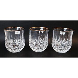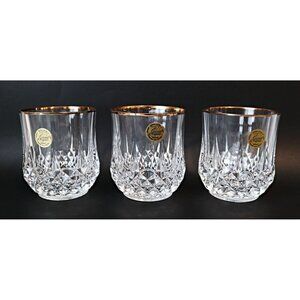 6 Cristal D' Arques Glasses Longchamp Lowball Rocks Glasses Diamond Cut Gold Rim