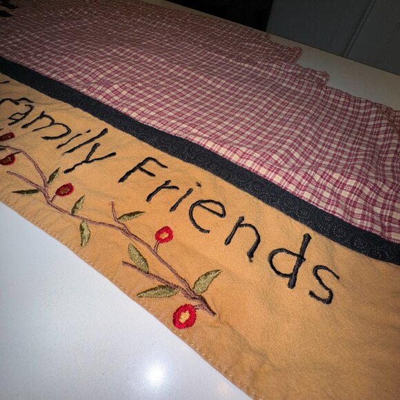 6 Fabric Placemats Checkered Embroidery Faith Family Friends Tan Red Black