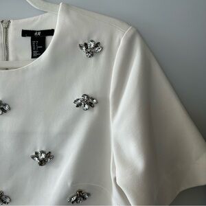 [6] H&M White Structured Short Sleeve Crop Top W/ Silver Jewel Embellishments
