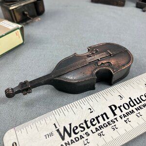 6 Metal Miniatures with antique finish. Cash register is 2" across. Bass is 4" long. (The angle of the photos affects how the size looks.)