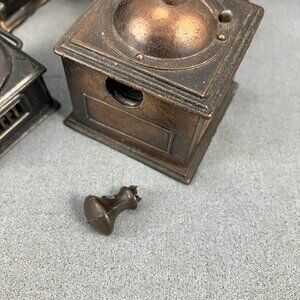 6 Metal Miniature Furniture-Grinder(knob broken) Victrola Cash Register Bass