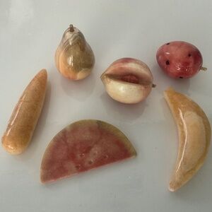 6 PIECES OF VINTAGE ALABASTER ONYX MARBLE FRUIT MCM