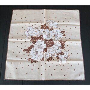6 Vintage Cotton Floral Napkins Tan White Brown Flowers