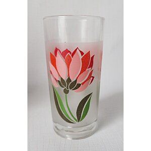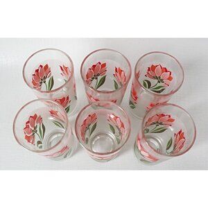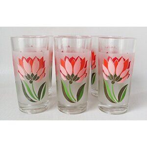 For your consideration are a set of six pink tulip flower drinking glasses produced by Luminarc, circa 1970's.