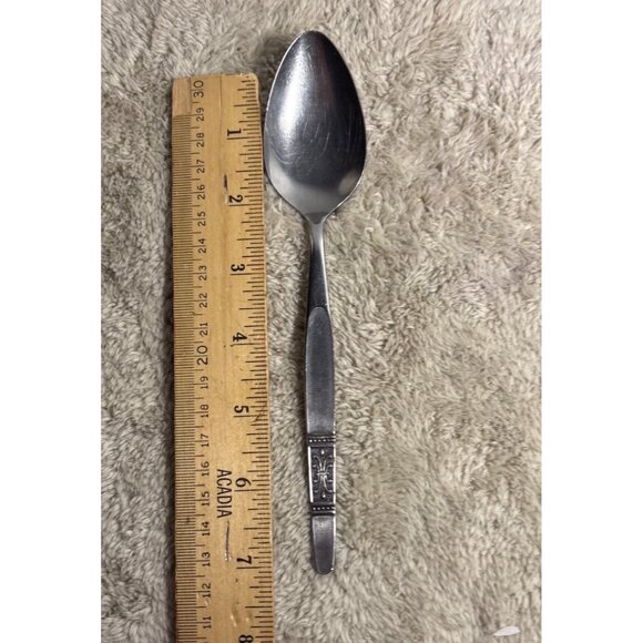 This set of six vintage teaspoons showcases a sleek design with ornate handles, crafted from durable stainless steel. Made in Japan, they bring a timeless elegance to dining settings.
