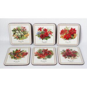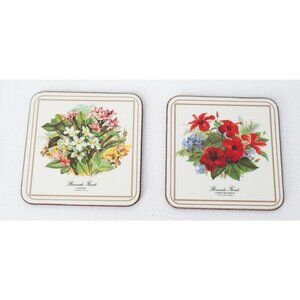 6 Vintage Pimpernel Caribbean Flowers Coasters w/ box Barware Cork Backing