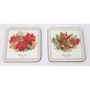 For your consideration is a vintage boxed set of six Caribbean flower coasters set by Pimpernel.