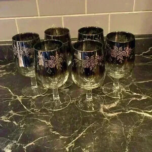 6 Vintage Silver Fade Wine Glasses Ombre WineGlasses, Leaf design made in France