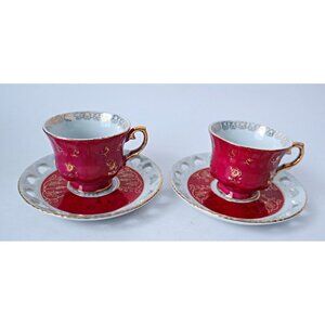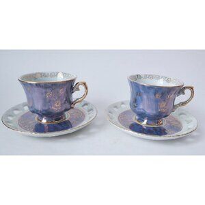 6 Vintage Teacup & Reticulated Saucer Tea Cups Lusterware Japan Ohashi China