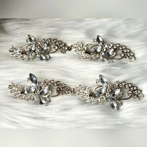 6" Women Bridal Cubic Zirconia Hair Clip x2, Silver Floral Barette, Wedding