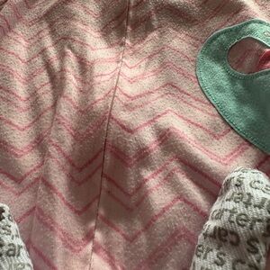 Charming pink footie with chevron pattern. Features a cute dinosaur applique. Ideal for cozy playtime.