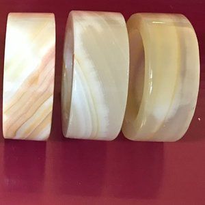 Set of SIX alabaster napkin rings. 2.25" D. x .75" H. with veining of cream, white, and a little pink/coral.