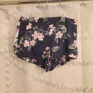 Super cute, super nice, navy blue, satiny sleep shorts with pink and green floral design and cream colored side panels with same floral design. Half elastic waistband. No stains, rips, or tears. EXCELLENT PRE-OWNED CONDITION 😊