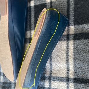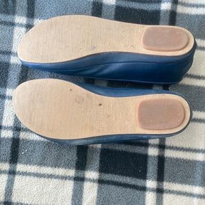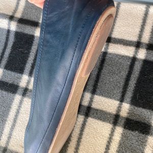 Blue ballet flats by Purejill. Cushiony inner sole and comfortable for standing. Appear to be leather. Go really great with jeans, leggings or a dress.